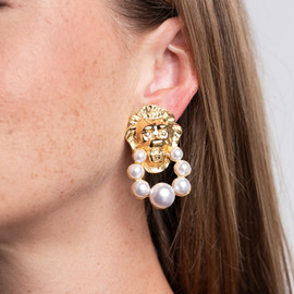 Kenneth Jay Lane Kenneth Jay Lane Lion Pearl Doorknocker Clip Earrings Experience the enchanting rev
