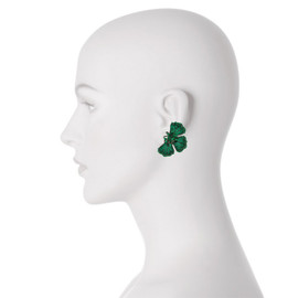 Mei's Jewelry Petal Flower Emerald EarringsRhodium platedSwarovski crystalsSize: 1.75 x 1.25 inchesC